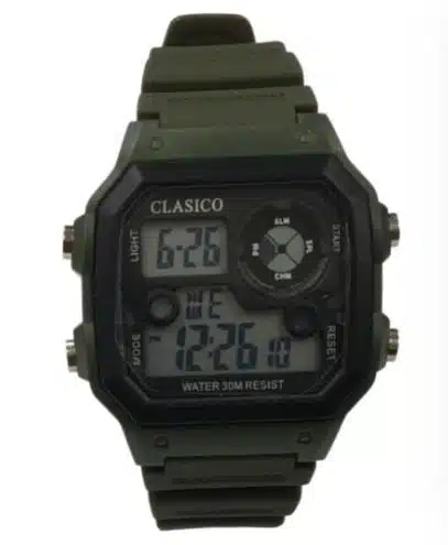 Clasico Mens Digital Water Resistant Green Rubber Strap Watch