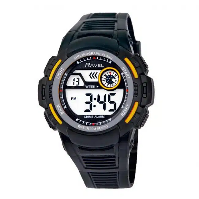 Ravel Mens 3ATM Digital Sports Black/Yellow Watch RDG.14.11